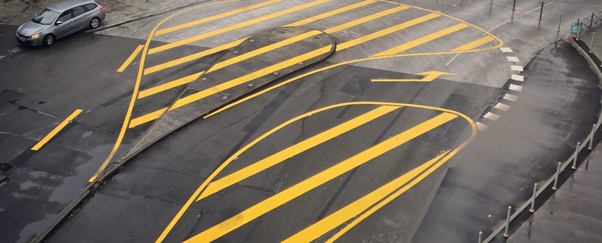 Le plan Guide du projet urbain Euralille 3000 n’avait pas dessiné finement cette mise en boucle. Le nouveau plan de circulation de la métropole va arriver études lancées, comme un élément disrupteur, la métropole et la ville nous demandant de l’intégrer sur le secteur des gares. L’une des contraintes était de faire ces aménagements et dans un délai extrêmement contraint (moins de 12 mois), ce qui nécessitait de faire des études, vérifier des hypothèses en lien avec notre BE mobilité, le partager avec les services concernés et ne nous laissait pas le temps nécessaire à la réalisation d’un aménagement « en bonne et due forme ». Et donc on a posé des potelets, y compris en réel avec les pompiers pour s’assurer des rayons de giration, et accompagné cette démarche d’un dispositif de signalétique fort, comme une démarche préfiguratoire nous permettant de « tester » et d’observer les usages…
